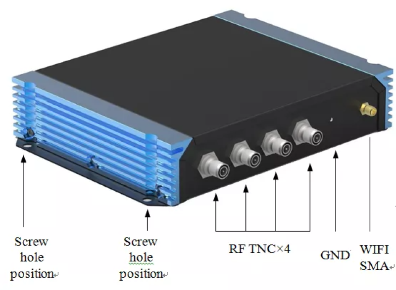 - Puertos RP TNC, con una antena polarizada circular de 8dbi, la distancia de lectura puede alcanzar 10 metros y la velocidad máxima de identificación puede llegar a 400 tags/sec.
