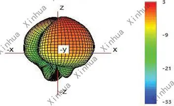 (6) Typicall Free Space 3D Radiation Pattern at 928MHz(unit:dBi): |