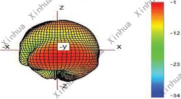 (4) Typicall Free Space 3D Radiation Pattern at 902MHz(unit:dBi): |