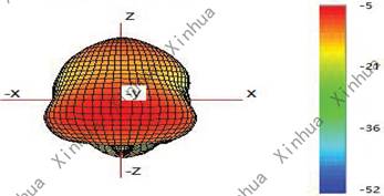 (6) Typicall Free Space 3D Radiation Pattern at 928MHz(unit:dBi): |