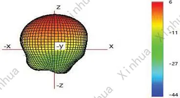 (1) Typicall Free Space 3D Radiation Pattern at 902MHz(unit:dBi): |